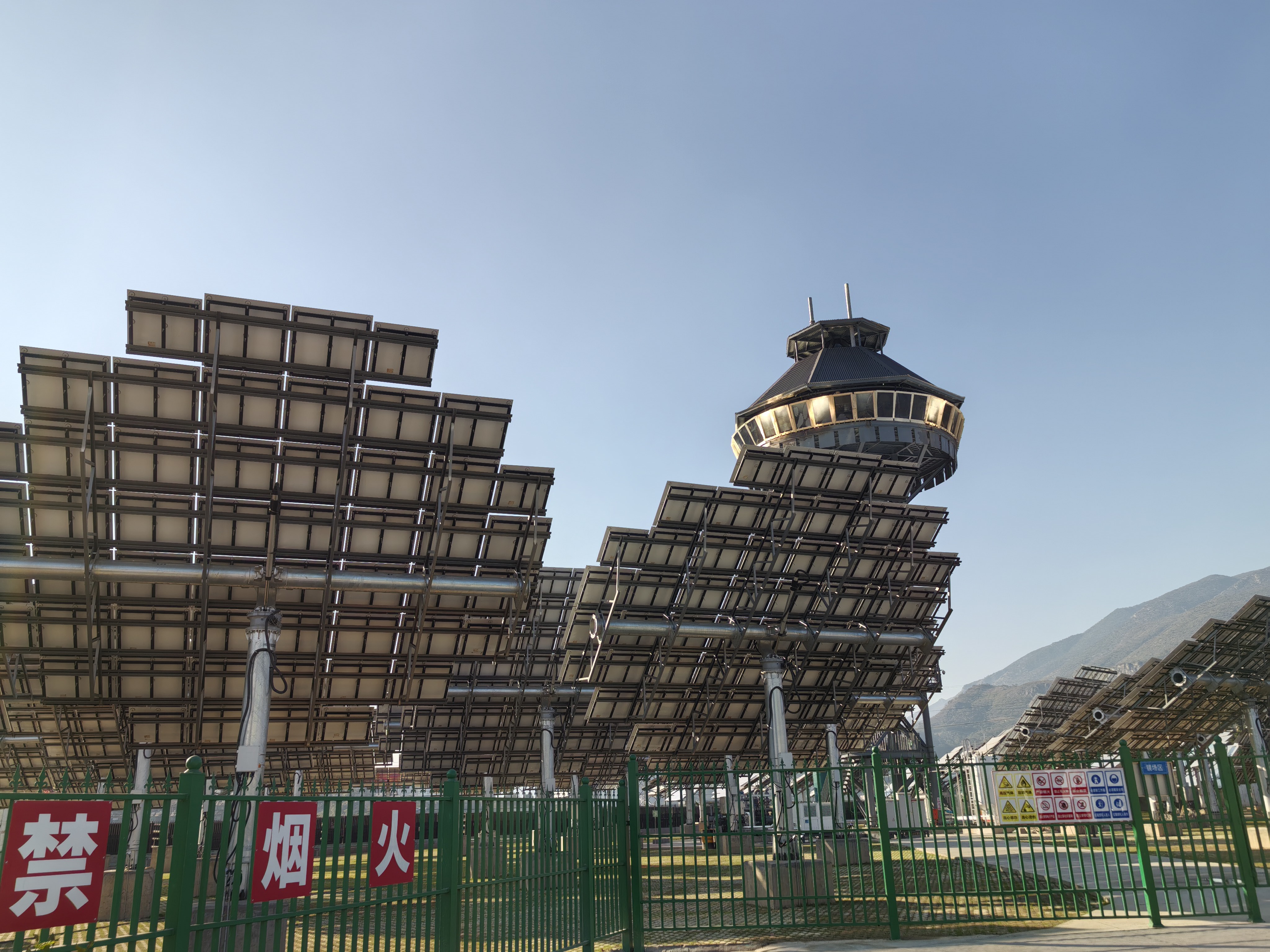 一键按下,144个定日镜缓缓转动,阳光被集中反射到聚光反射塔,经过化学反应,氢气从水中被分解出来,像科幻电影中的场景。