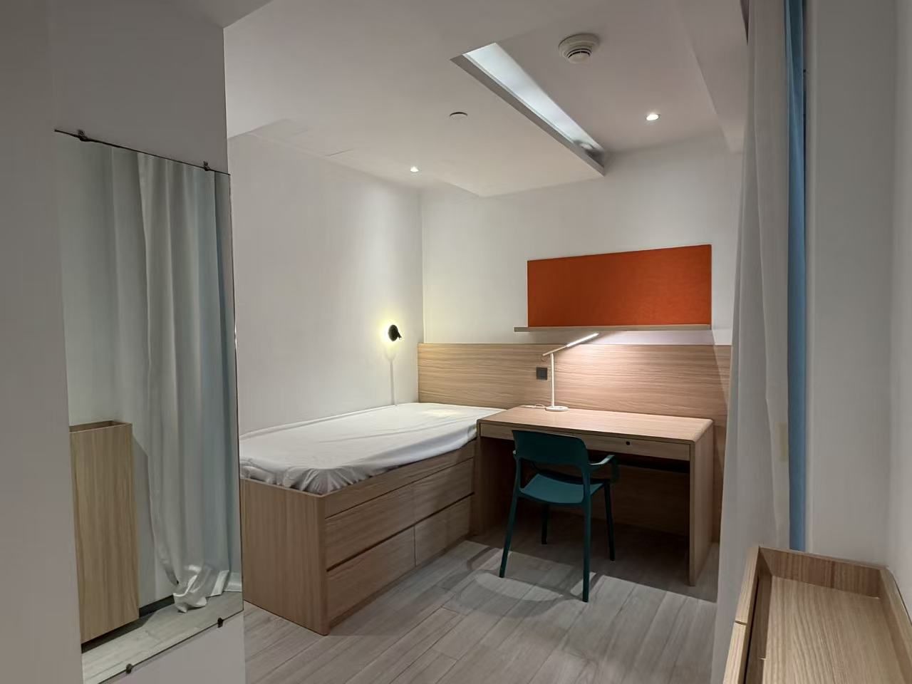 Y83内的一间单人房,配有家具和家电,学生可“拎包入住” 图片来源:每经记者 李旭馗 摄