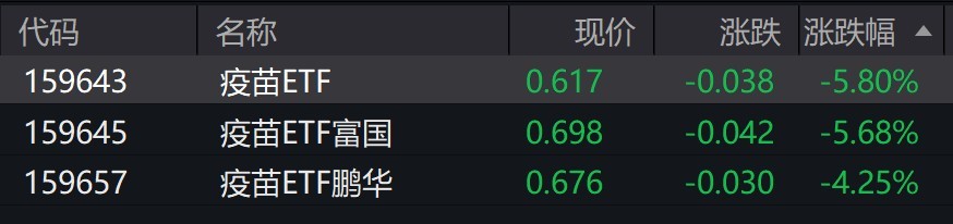 疫苗概念股走低,沃森生物跌超9%,智飞生物跌超8%,昭衍新药、康泰生物跌超6%。