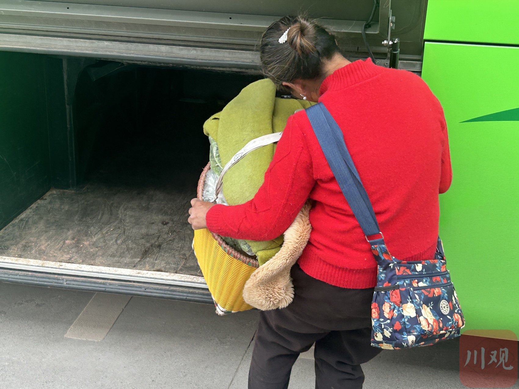 高滩镇村民乘坐川渝20路去往重庆地界卖菜。熊晓雨 摄