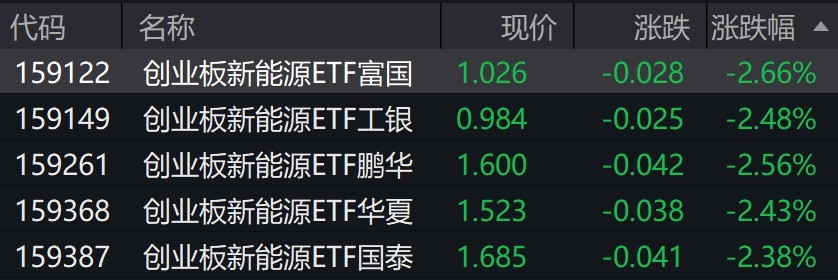 受盘面影响,创业板新能源相关ETF跌超2%。