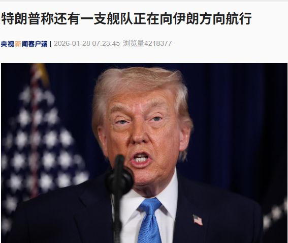 当地时间1月27日,美国总统特朗普在美国艾奥瓦州发表演讲时说,还有一支舰队正驶向伊朗,希望伊朗能同美国达成协议。