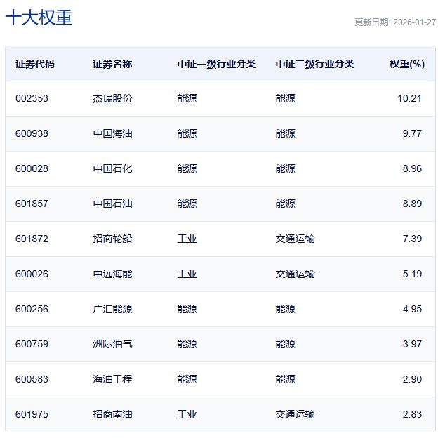 中证油气产业指数主要权重股