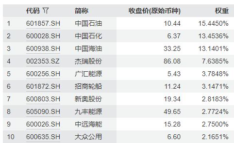 国证石油天然气指数主要权重股