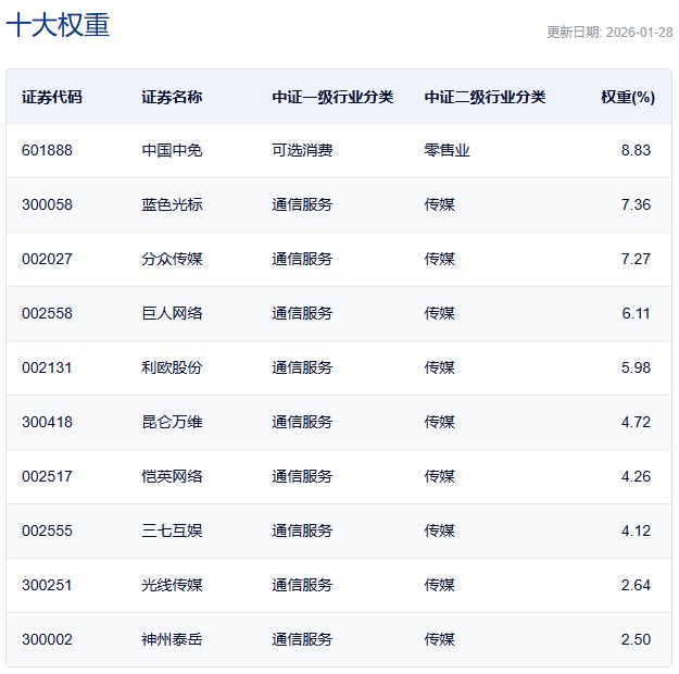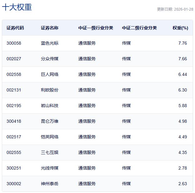中证传媒指数主要权重股