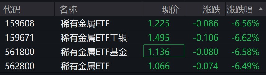 受盘面影响,稀有金属ETF跌超6%。