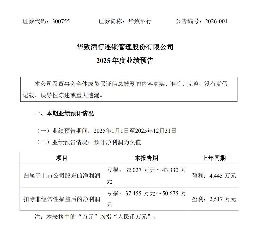 经过前一日股价“狂飙”后,1月30日,华致酒行发布了2025年业绩预告。