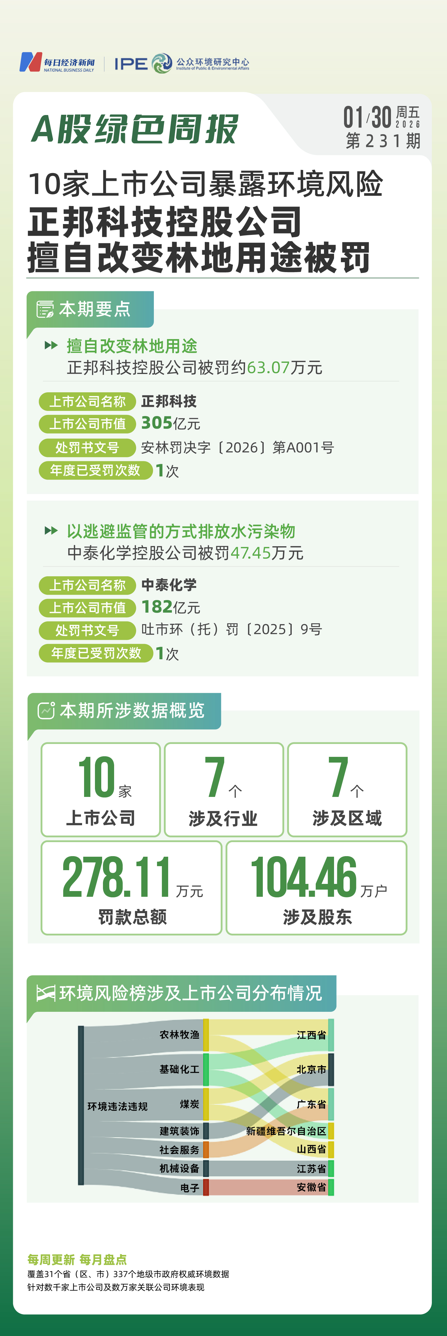 2026年1月第五周,哪些上市公司的环境保护与信披责任亮起了红灯?且看A股绿色周报第231期。