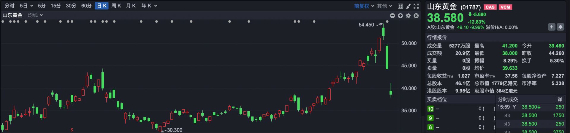 市场焦点方面,今日贵金属相关个股成为“重灾区”。其中,山东黄金(HK01787)、赤峰黄金(HK06693)跌超12%。此外,灵宝黄金、江西铜业股份跌超9%,招金矿业、中国黄金国际跌超8%,紫金矿业跌超5%。