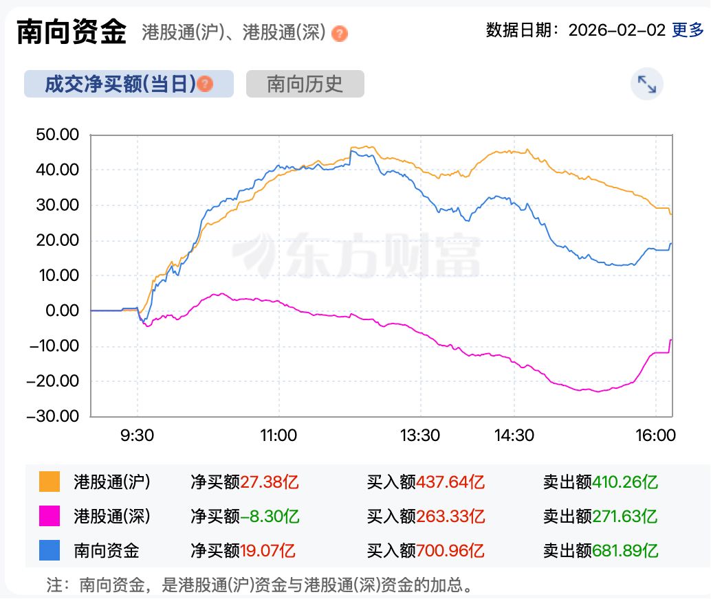 资金方面,南向资金小规模进场抄底。截至收盘,南向资金净买入港股超19亿港元。