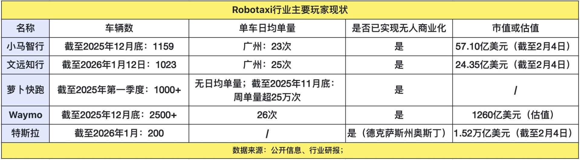 目前,国内头部阵营已基本清晰。小马智行在实现超千辆部署目标的同时,更在广州跑通了关键的“单车盈利”模型;文远知行与萝卜快跑也均建立了规模超千辆的全球车队,文远知行预计于今年一季度实现阿联酋阿布扎比区域整体盈利。