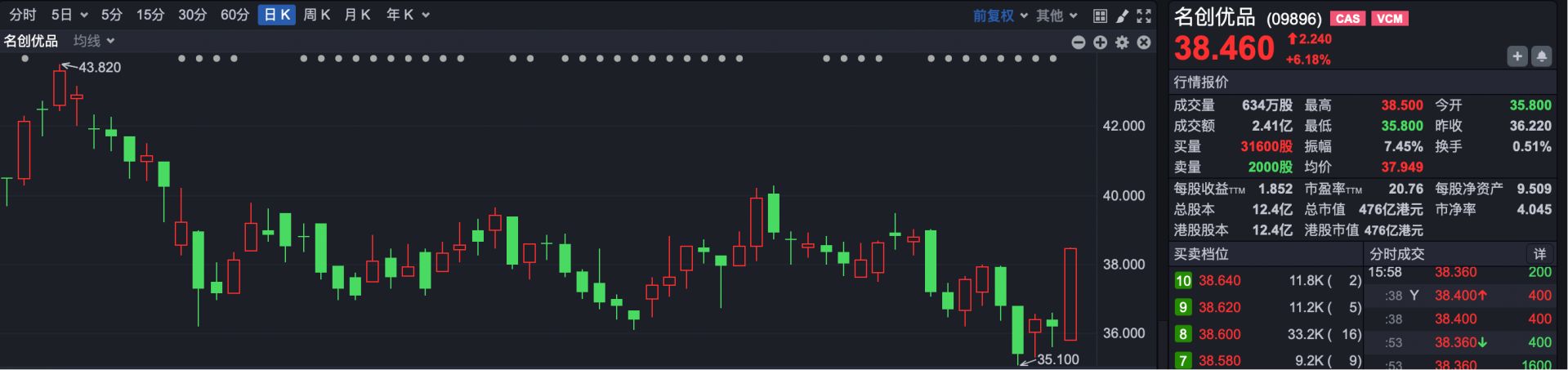 市场热点方面,新消费概念强势,名创优品(HK09896)涨超6%。