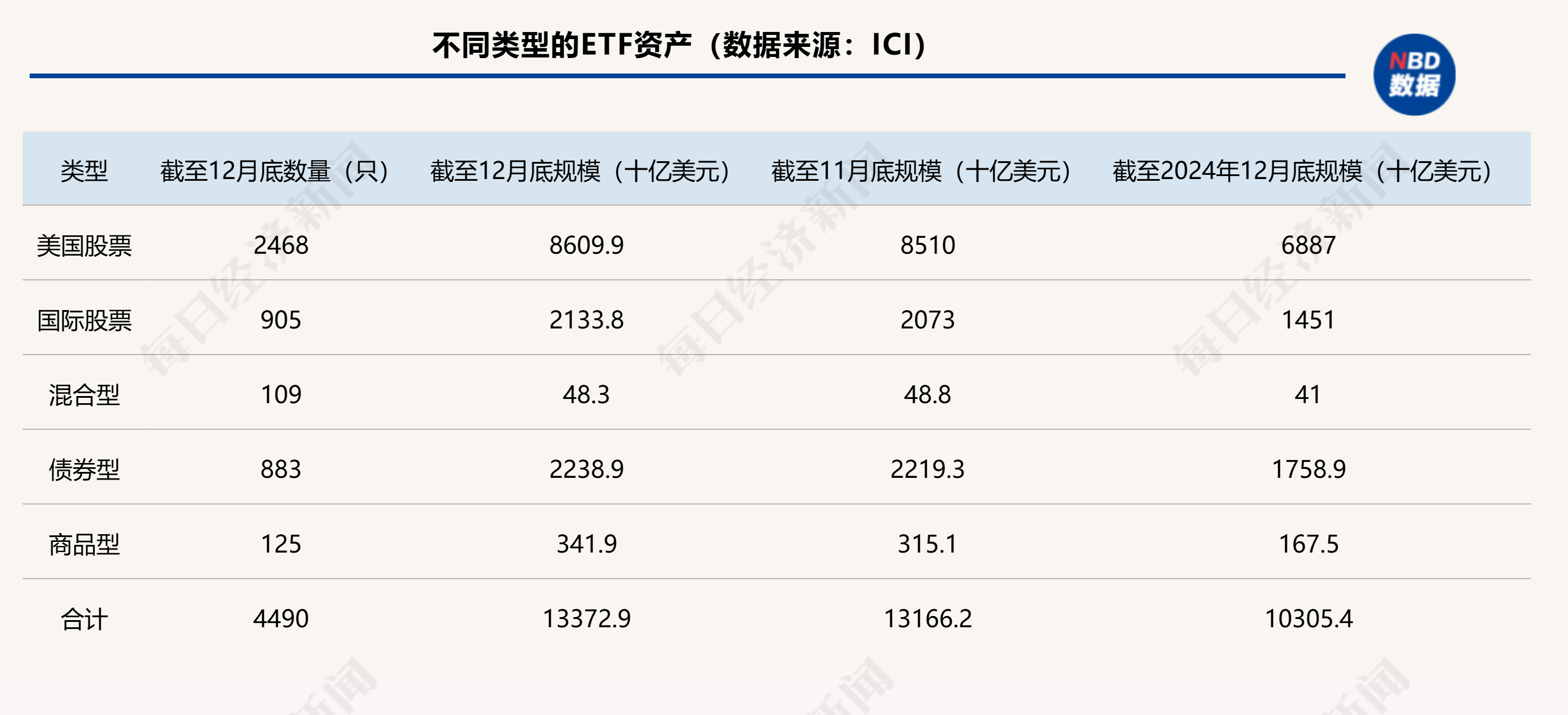 来自美国投资公司协会(ICI)的数据显示,去年12月美国ETF资产管理规模增长了2067亿美元,全年累计增长3.07万亿美元,同比增幅达到29.8%。