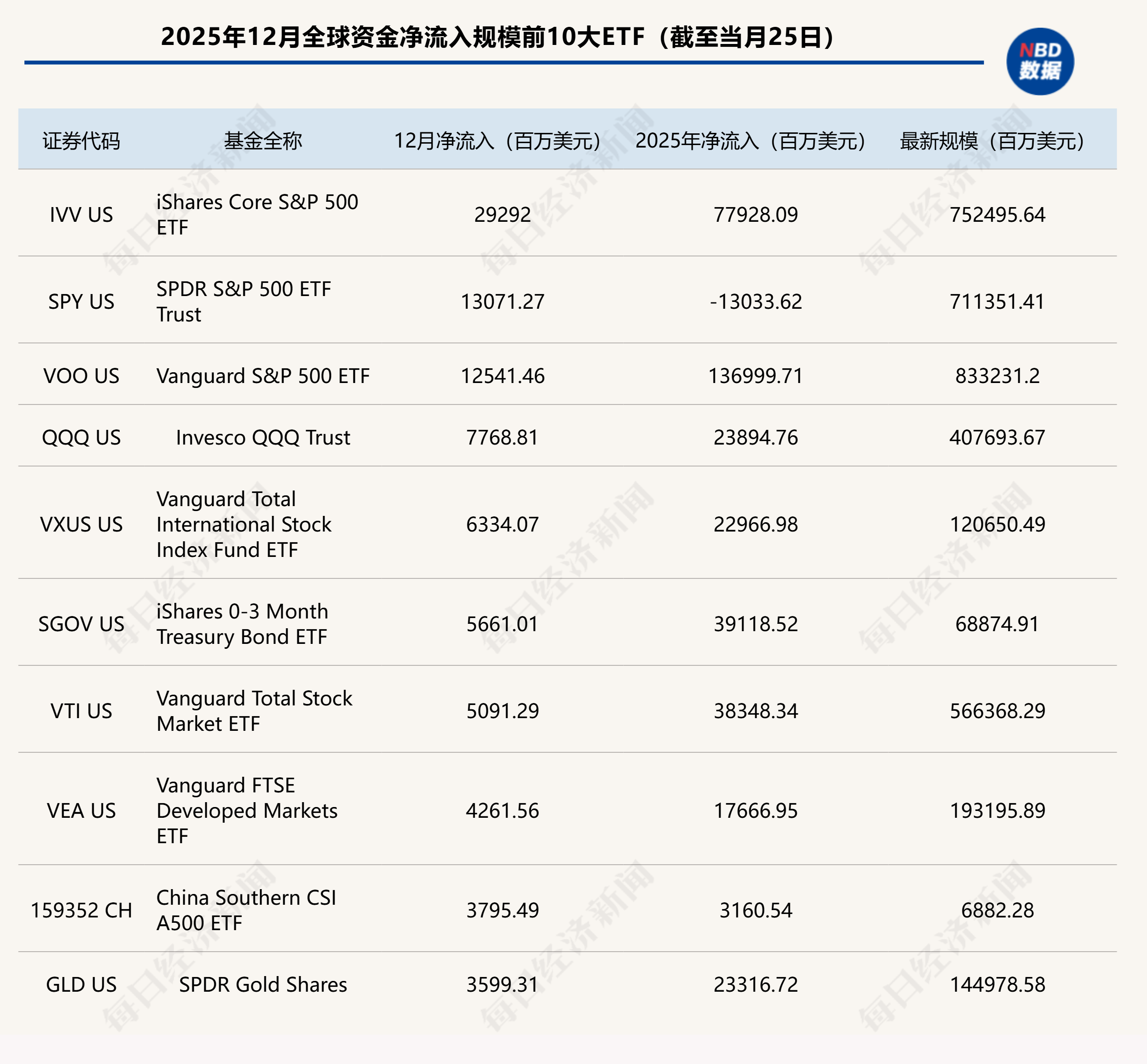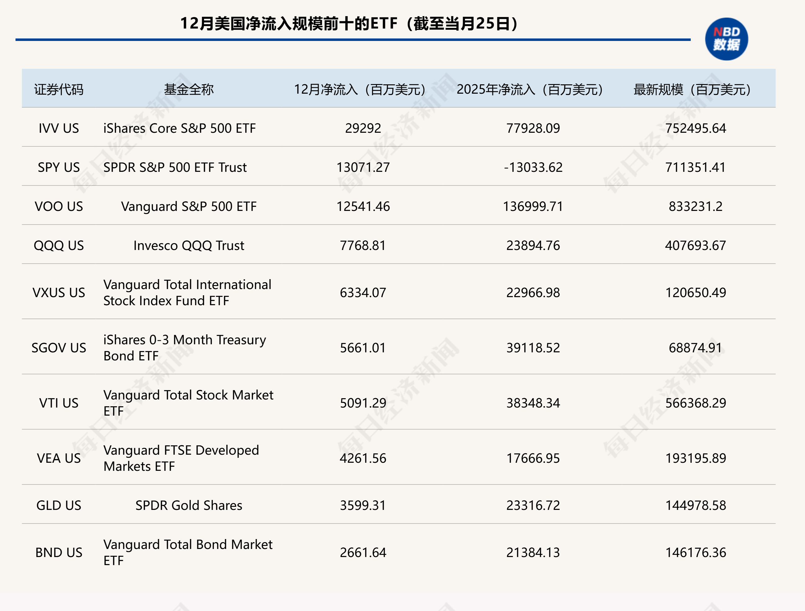 固定收益型ETF也需求旺盛,12月净流入509.5亿美元,全年累计净流入4586.3亿美元,显著高于2024年的3152.4亿美元。
