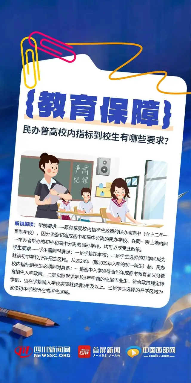 春秋假怎么放、课后服务咋收费、转学流程怎么走、指标到校有啥要求,每一个疑问都有明确答案。2025年,四川教育不只回应关切,更用“网链共享计划”让高寒山区孩子也能上好学,普惠性幼儿园覆盖率达87.9%,高校“双一流”建设再上台阶!