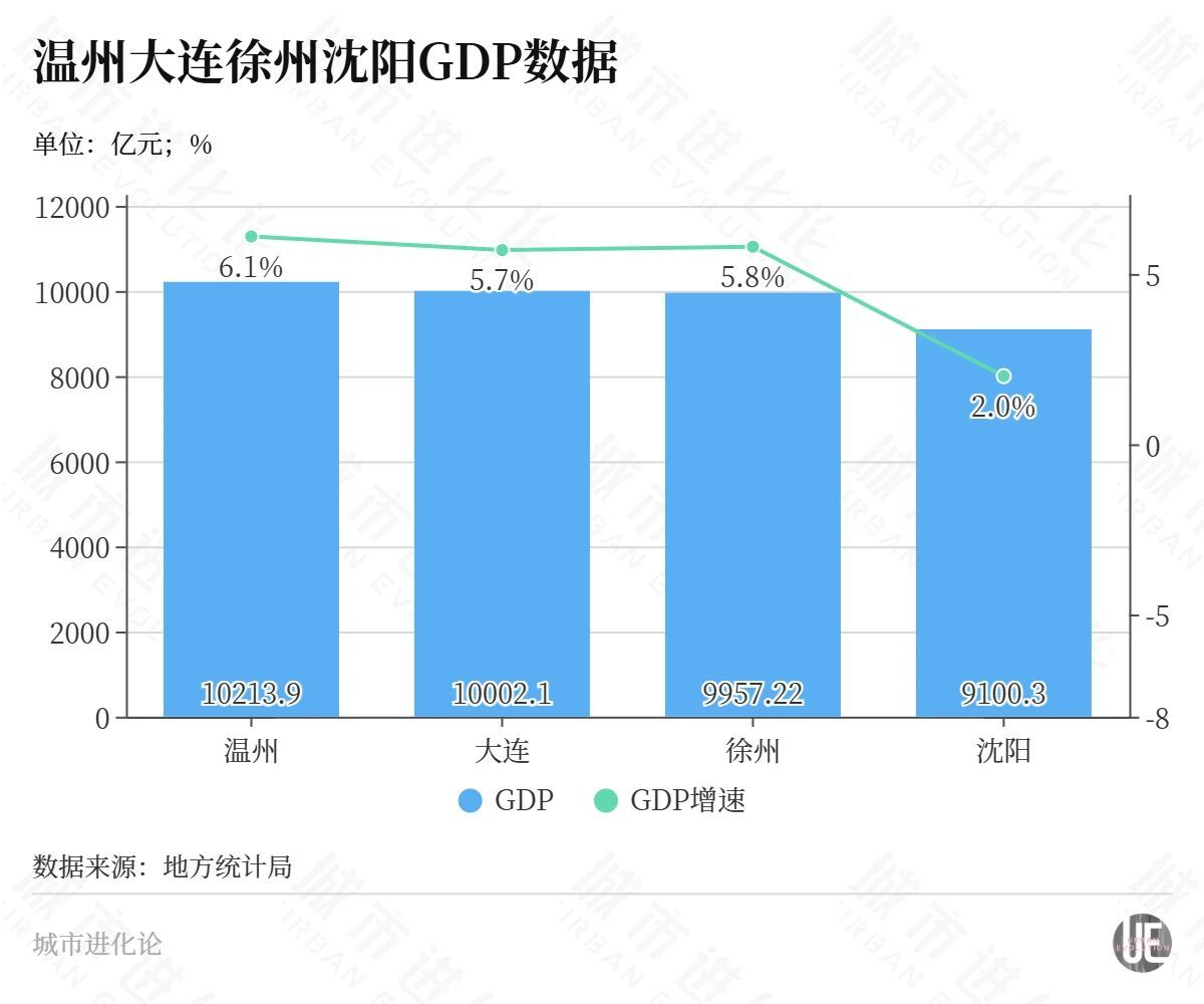 2025年,温州与大连一起迈过“万亿”门槛,成为浙江第三个、东北首个GDP破万亿的城市。同期,徐州GDP达到9957.22亿元,未能如愿跻身“万亿俱乐部”。