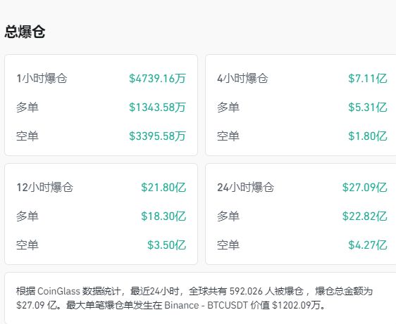 比特币反弹至65000美元上方,此前一度触及60000美元。数据显示加密货币全网24小时超59万人爆仓,27.09亿美元(约合人民币188亿元)。