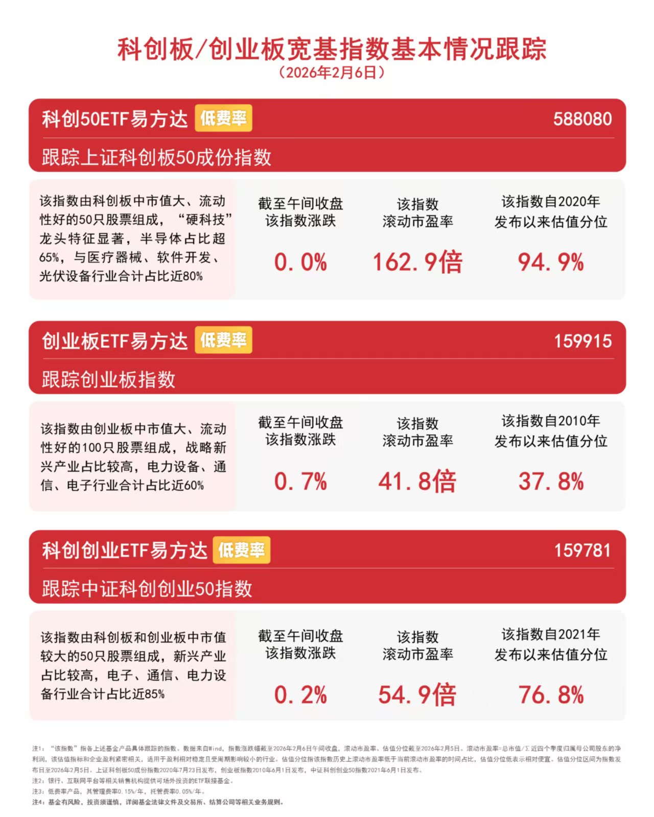截至午间收盘,创业板指数上涨0.7%,中证科创创业50指数上涨0.2%,上证科创板50成份指数上涨0.01%,创业板ETF易方达(159915)和科创创业ETF易方达(159781)早盘均获资金加仓,分别达2700万份和2400万份。