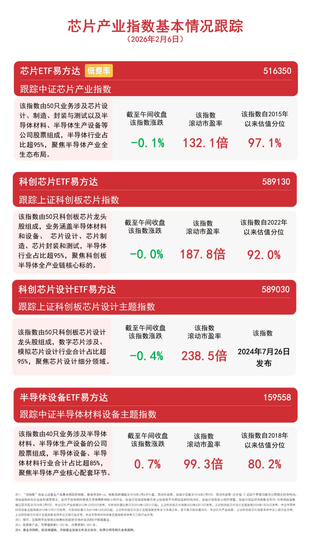 截至午间收盘,中证半导体材料设备主题指数上涨0.7%,上证科创板芯片指数下跌0.03%,中证芯片产业指数下跌0.1%,上证科创板芯片设计主题指数下跌0.4%,半导体设备ETF易方达(159558)半日净申购达4300万份。