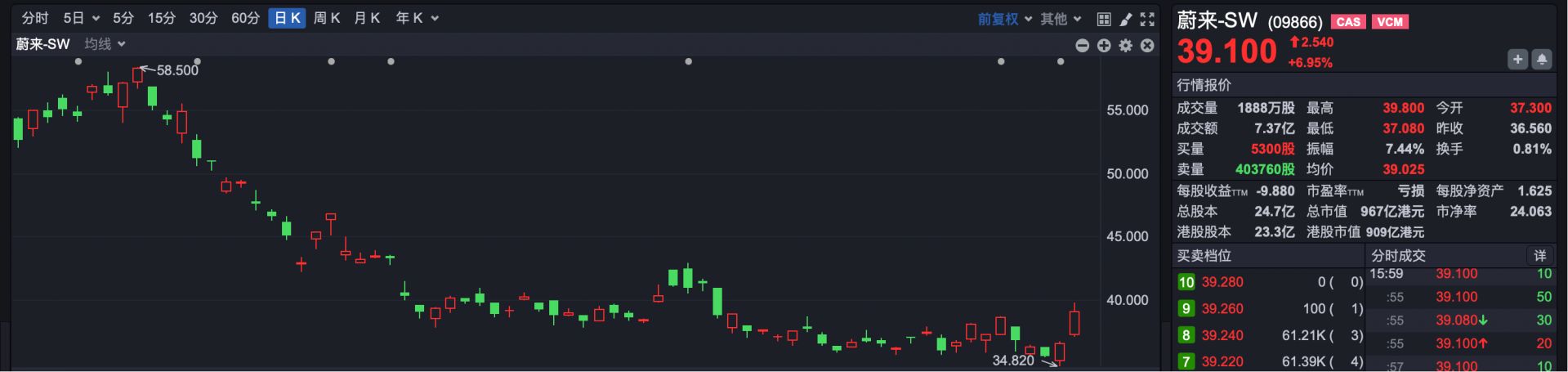 消息面上,2月5日晚间蔚来公告,预计2025年第四季度实现经调整经营利润7亿元至12亿元,这是其成立以来首次实现单季度经调整经营盈利,较2024年同期55.436亿元的经调整经营亏损实现大幅反转。业绩改善主要源于2025年第四季度销量持续增长,有利的产品组合推动汽车毛利率优化以及公司持续推行全面降本增效措施。