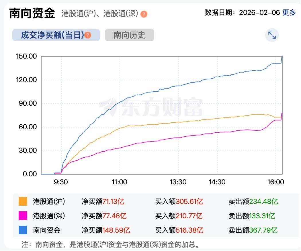 资金方面,南向资金继续大举抄底。截至收盘,南向资金净买入港股达148.59亿港元。