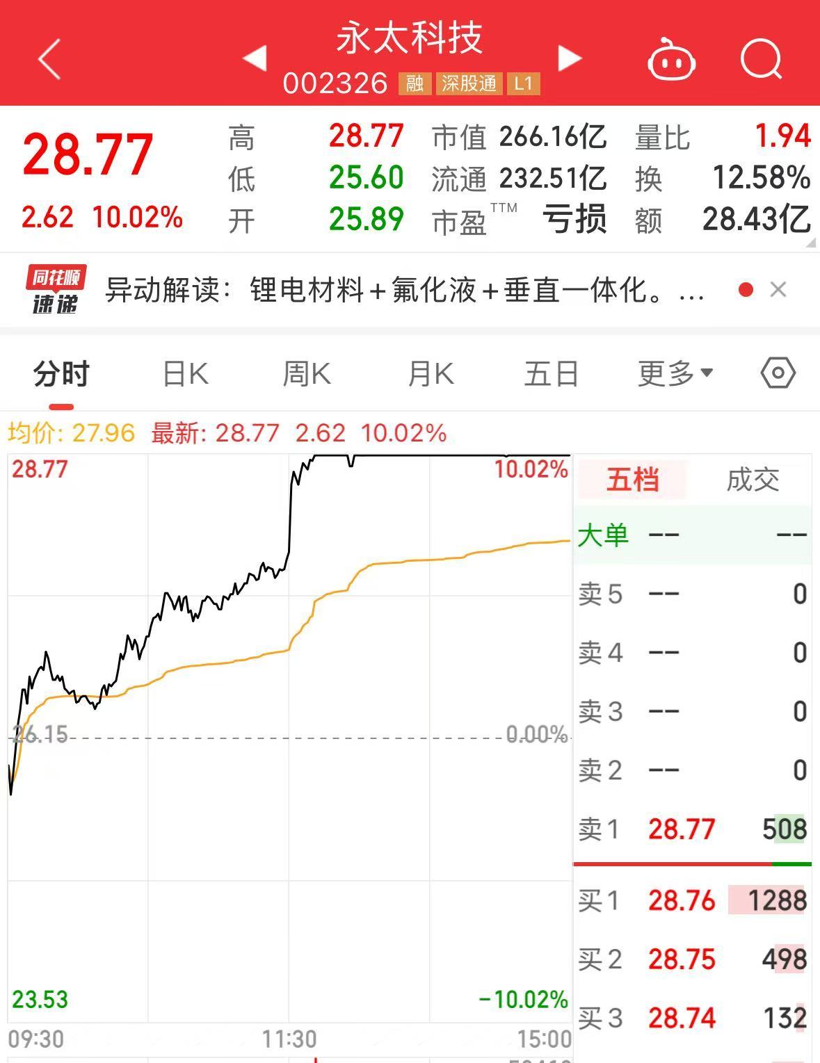 值得注意的是,该股已提前涨停。2月6日午后,永太科技的股价大幅拉至涨停,最新市值为266亿元。这也是该股2026年以来首个涨停板。