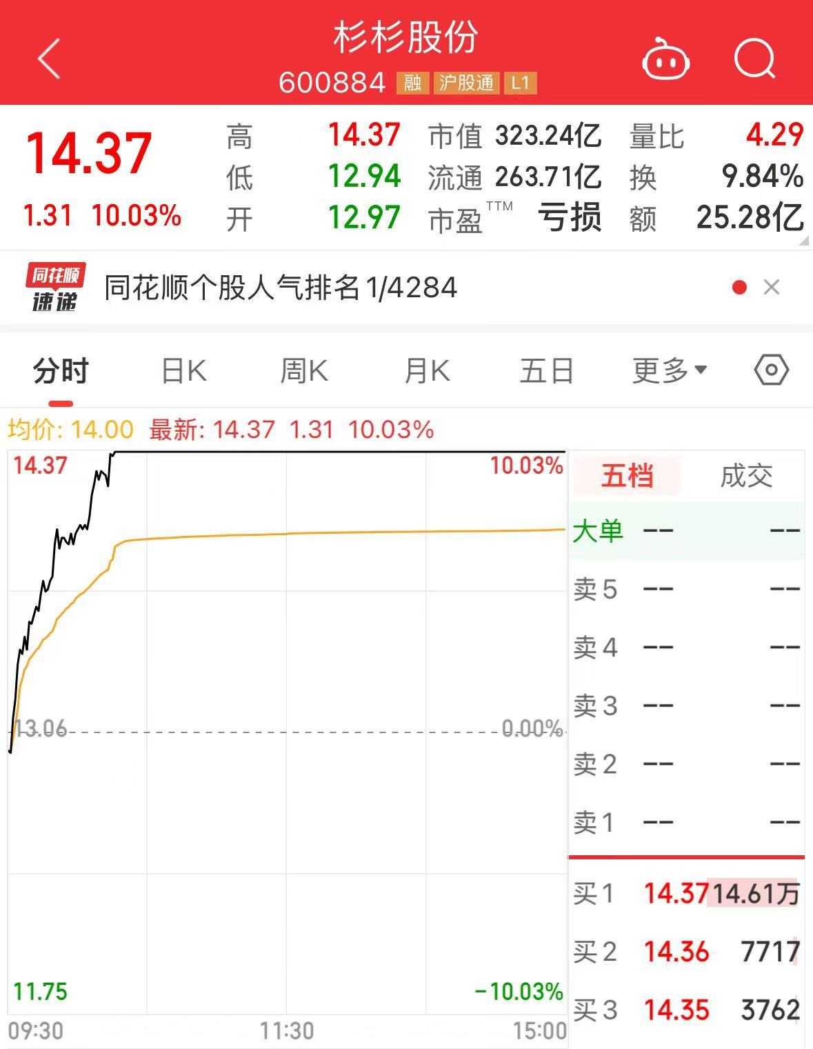 2月6日,杉杉股份开盘不久即封死涨停,截至收盘总市值为323.2亿元。