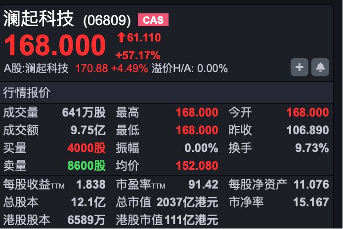 港股新股方面,今日澜起科技(HK06809)在港交所上市,早盘高开超57%。