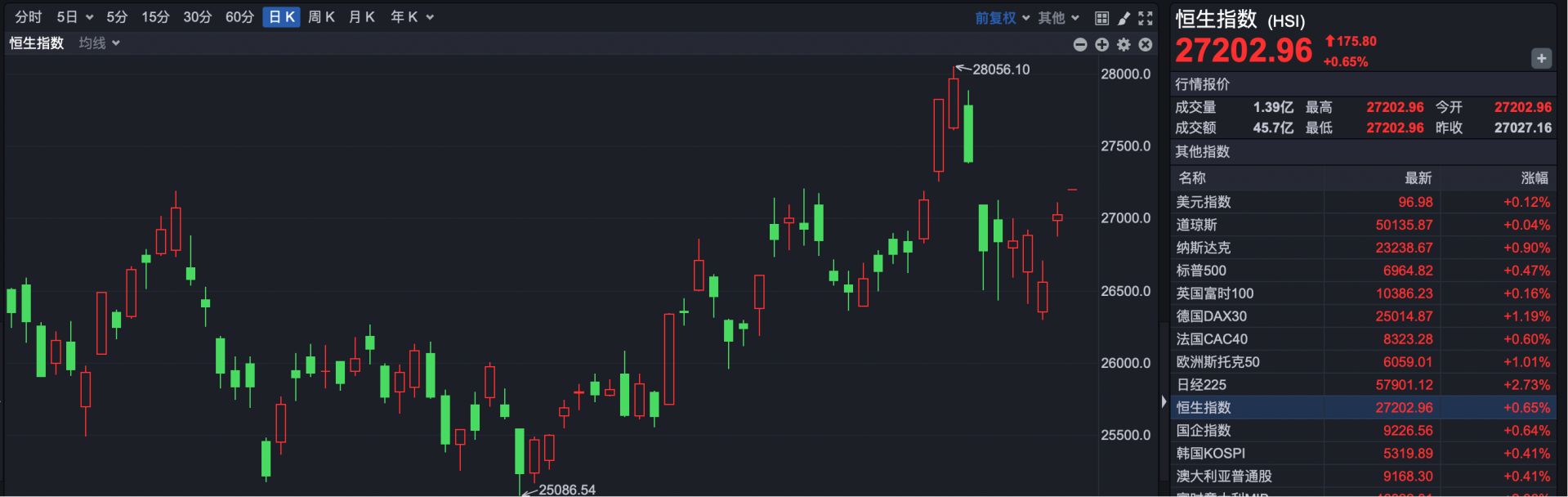 截至发稿,恒生指数开盘报27202.96点,上涨175.80点,涨幅0.65%。