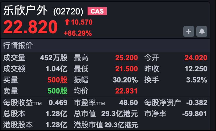 其中,渔具第一股乐欣户外(HK02720)上市后股价一度涨超105%,实现上市首日即翻倍。截至发稿,乐欣户外涨超85%。另一只新股爱芯元智(HK00600)早盘平开。