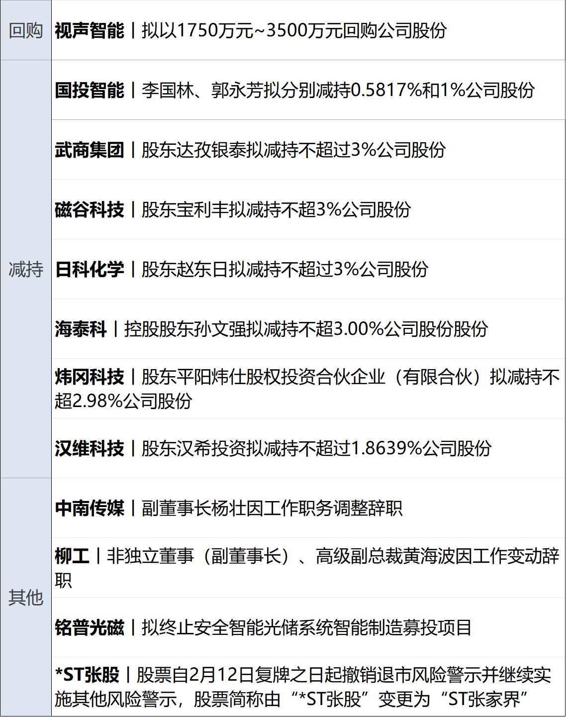 碧桂园(HK02007,股价0.28港元,市值114.78亿港元):2月10日晚,碧桂园在港交所公告称,本公司及本公司执行董事及主席杨惠妍、执行董事及联席主席莫斌及执行董事及财务负责人伍碧君于近期收到上交所出具的《纪律处分决定书》,由于本公司未能按照上交所的相关债券上市规则等规定及时披露本公司于2023年8月至12月、2024年1月至6月、2024年7月至12月存在债务逾期情形,上交所分别对本公司、杨女士、莫先生、伍女士及其他具名人士作出自律监管措施决定,对本公司及该等人士予以通报批评,并记入诚信档案。