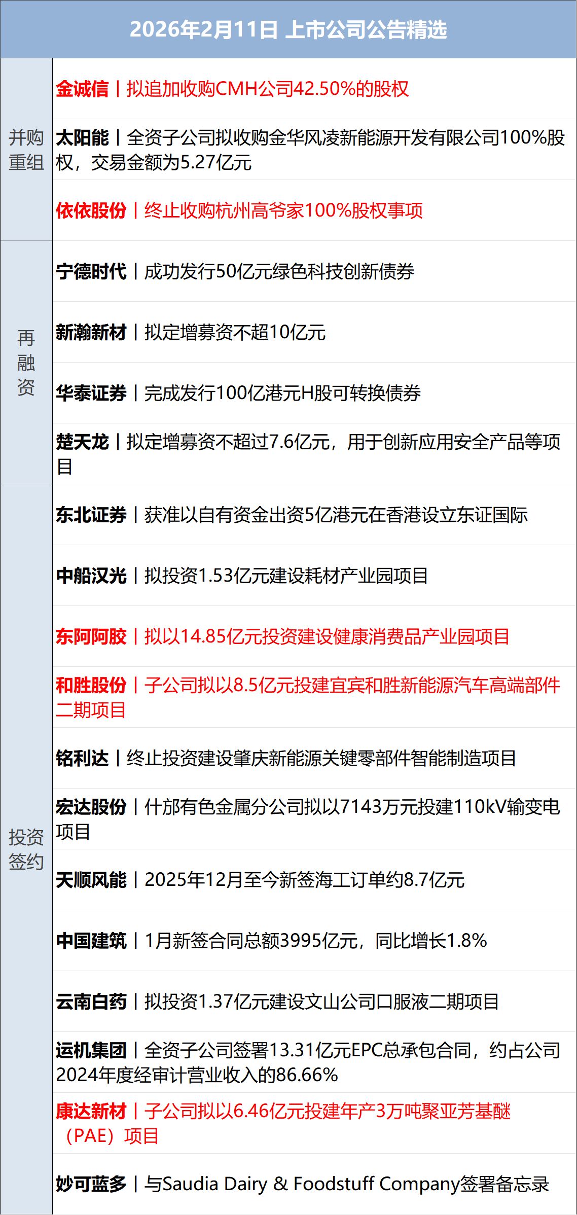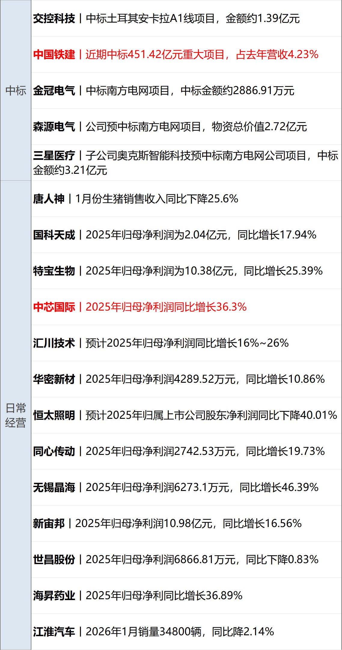 江淮汽车(SH600418,股价54.61元,市值1192.69亿元):2月10日,江淮汽车披露定增发行情况报告书,公司向姚志超、葛卫东等8名投资者合计发行了7016.84万股股份,发行价格为49.88元/股,募集资金总额为约35亿元。其中,私募大佬葛卫东耗资约10亿元认购了2004.81万股。同时,超级牛散章建平的妻子方文艳也出资10亿元认购了2004.81万股股份。2025年,章建平因投资寒武纪名声大噪。