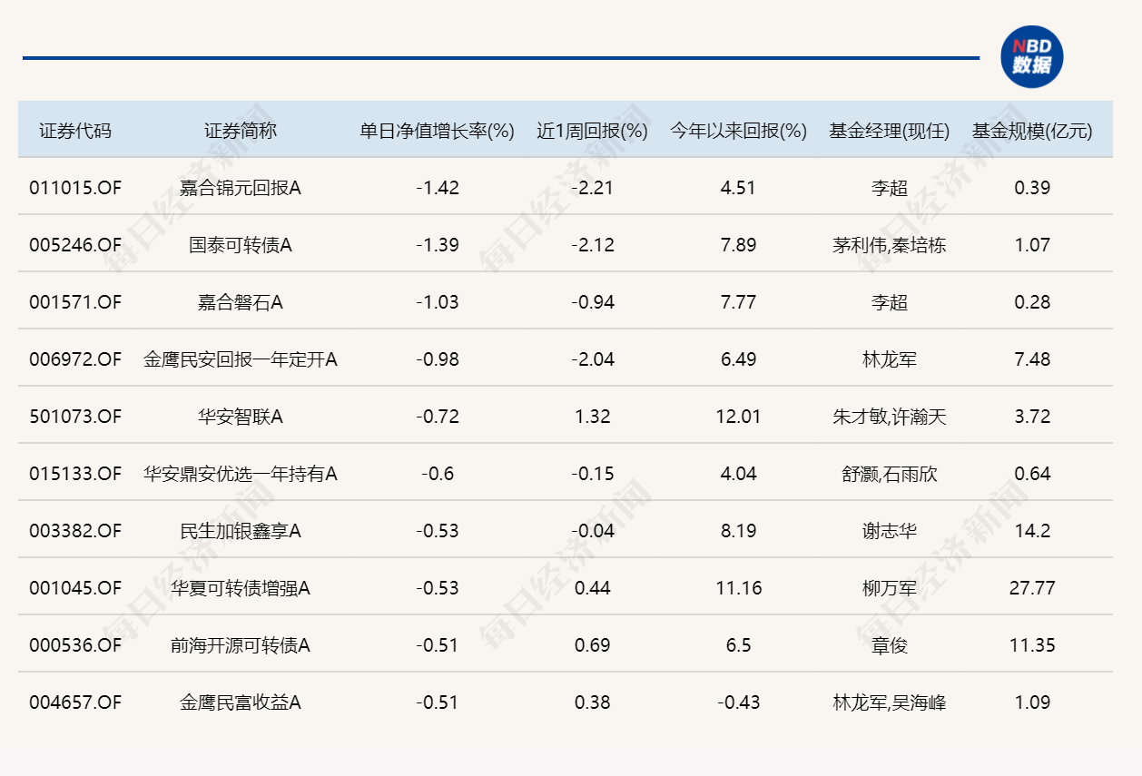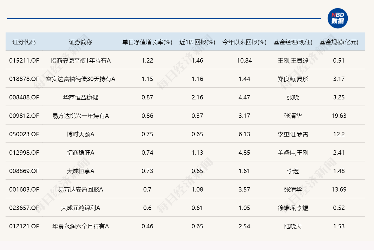 3.单日债基涨跌幅榜