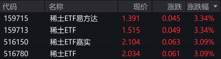 受盘面影响,稀土相关ETF涨超3%。