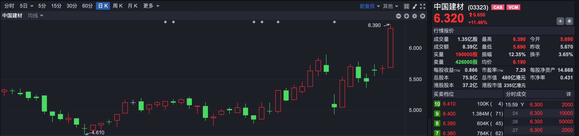 建材股涨幅居前,中国建材(HK03323)涨超11%,华润建材科技涨超5%,西部水泥涨超3%。