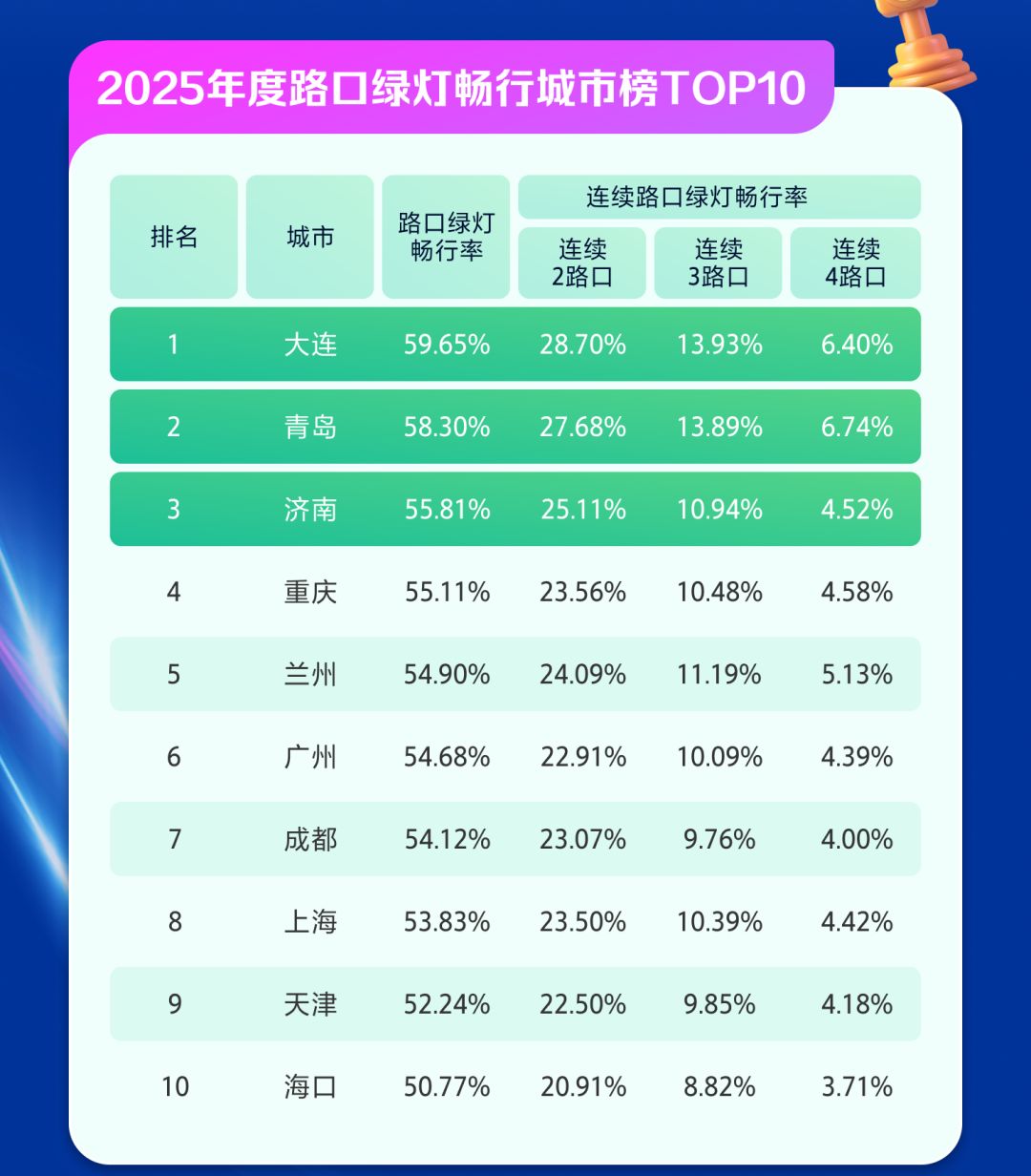 2025年度路口绿灯畅行城市榜,大连青岛济南居前三