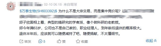 邱子欣拟通过减持进行捐赠的计划,在雪球等平台引发了投资者的广泛关注与讨论。投资者们的担忧主要集中在三点:一是担忧减持行为可能给万泰生物的二级市场流动性带来压力;二是对其交易方式感到不解,提出“为何不选择大宗交易,而是通过集中竞价?”的疑问;三是质疑捐赠方式本身,认为“直接捐赠股票或更为简便,是否涉及复杂的办理手续?”