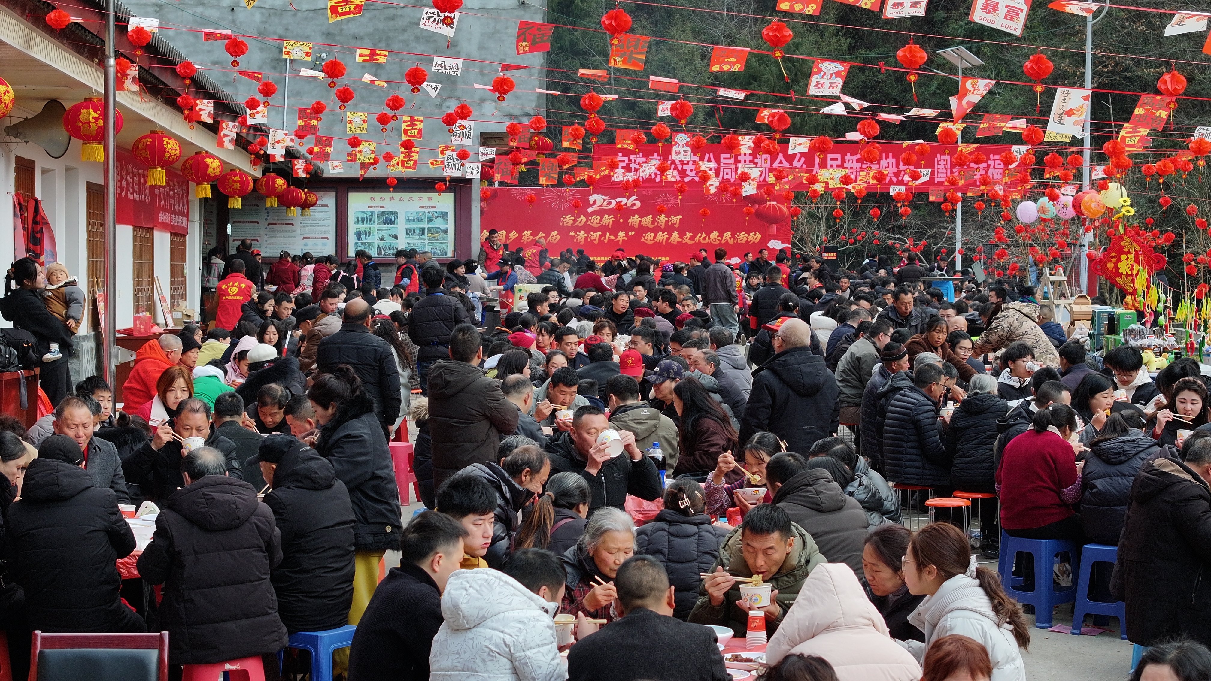 2月11日,腊月二十四,南方小年。广元市利州区金洞乡清河村第七届“清河小年”迎新春文化惠民活动如期举行。该村及邻村千余人高高兴兴围坐在一起,观看节目表演、免费吃坝坝宴,提前共度团圆佳节。
