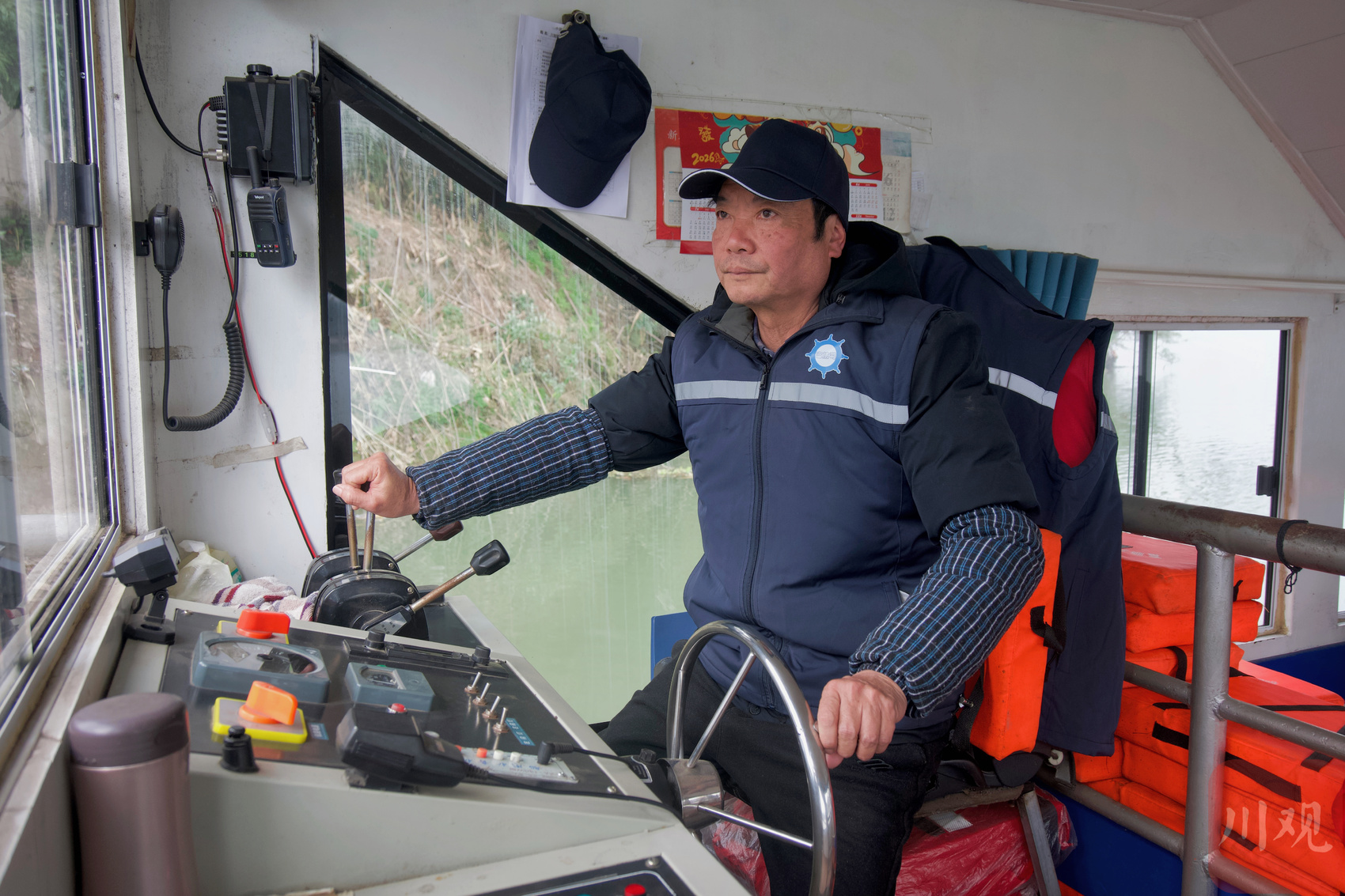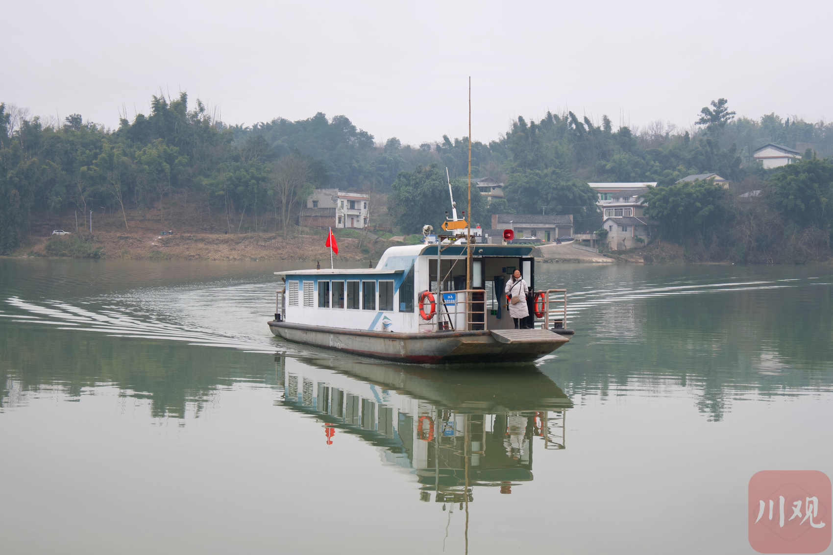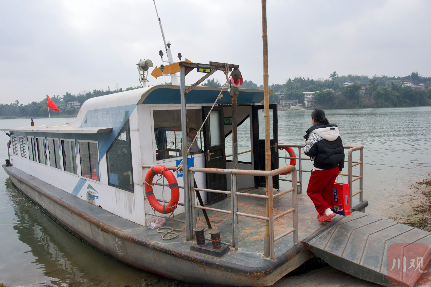 2月10日临近晌午,沱江岸边,一艘渡船停靠在自贡市富顺县狮市镇的渡运码头。“赶完场回家吃饭了?”坐在驾驶舱里的张同伙见陈家富上了船,熟络地招呼了一声。一旁,他的妻子杨润琴正忙着安全检查,待所有乘客坐定后,走到船头起锚。