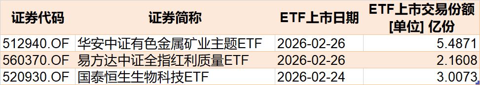 目前已有3只ETF披露节后上市,跟踪标的为有色金属矿业、红利质量、恒生生物科技等。