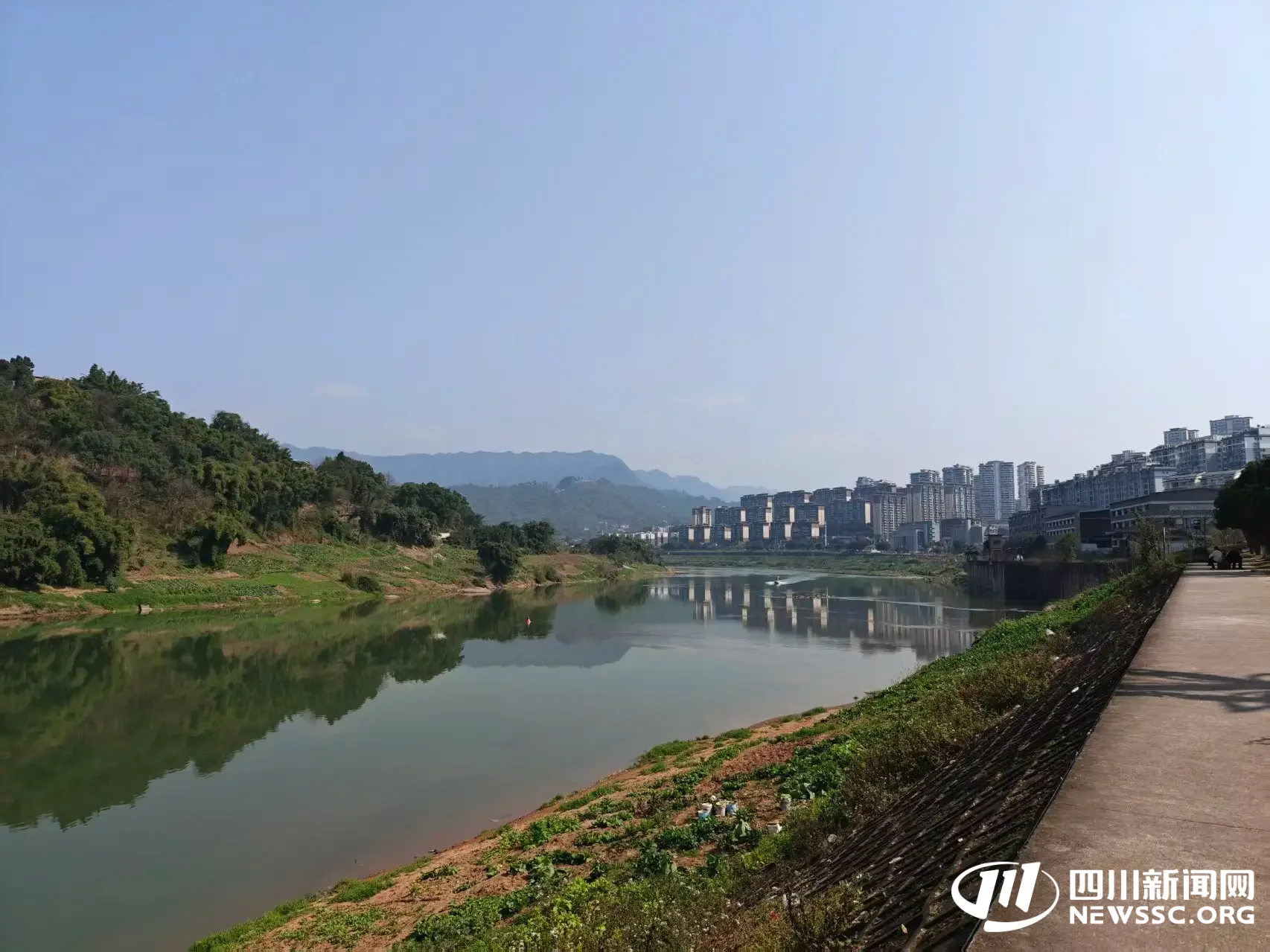 赤水河将川黔分隔两岸,图中左侧为四川省泸州市合江县,右侧为贵州省赤水市