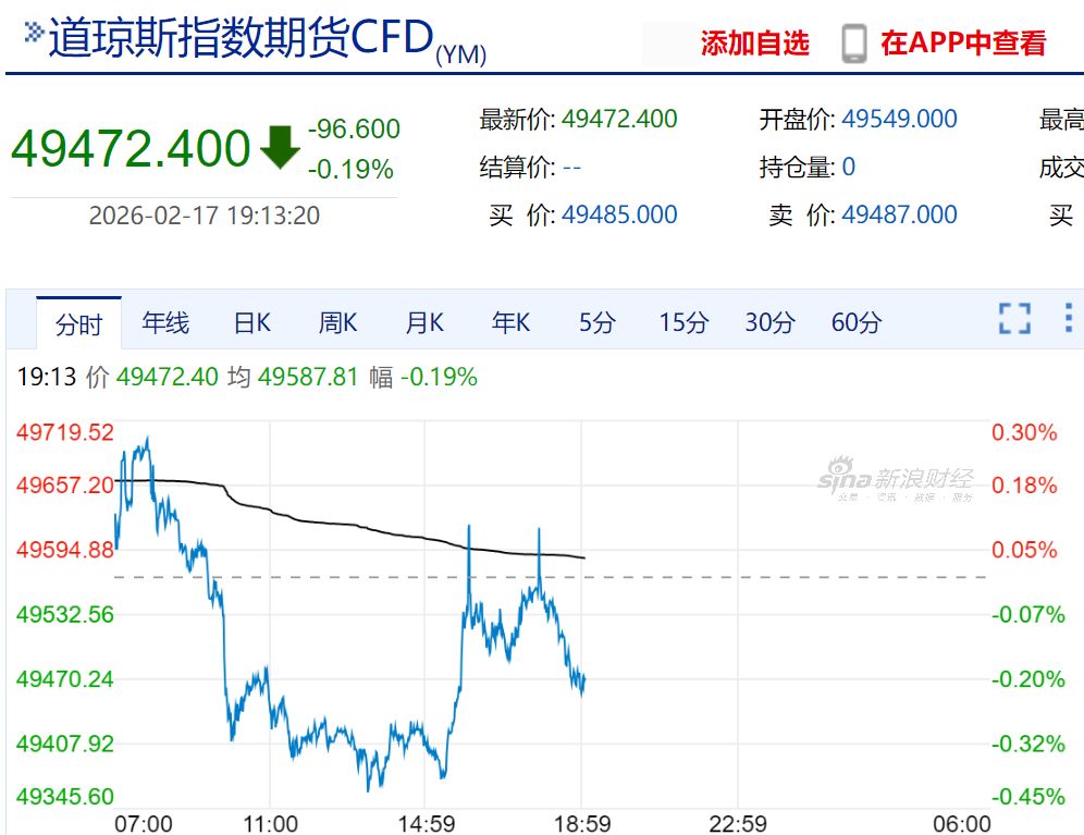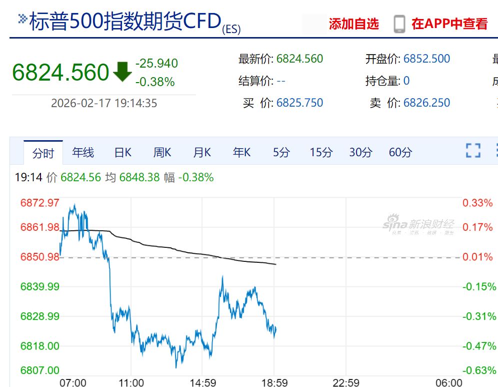 2月17日,美股盘前,美股三大股指期货全线下跌。