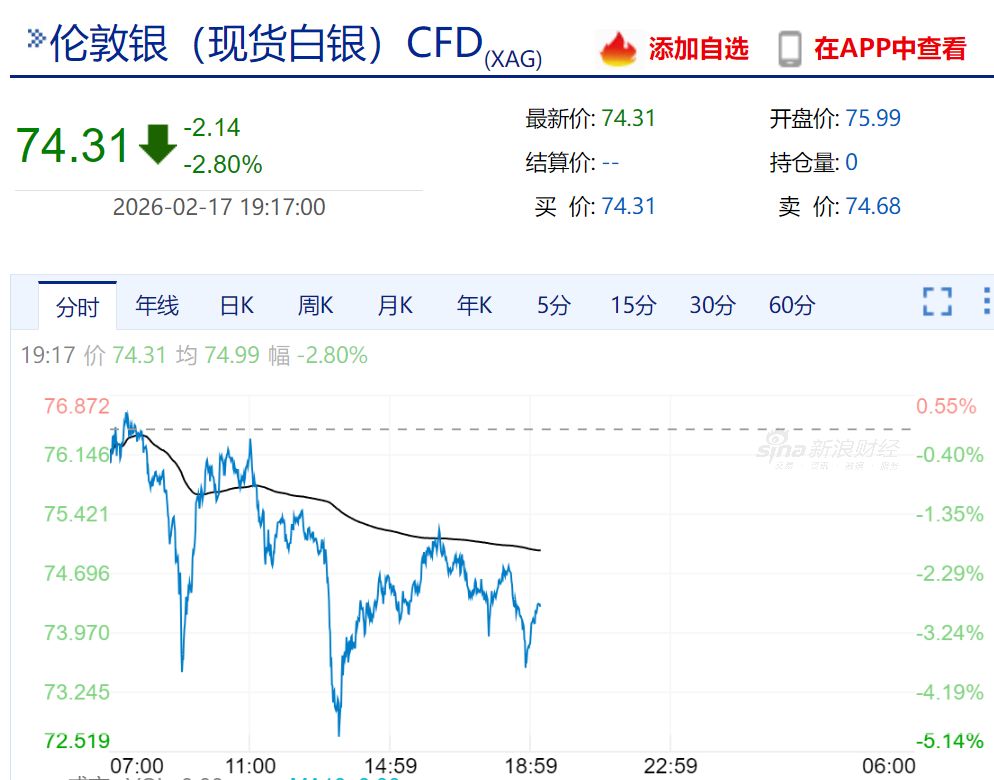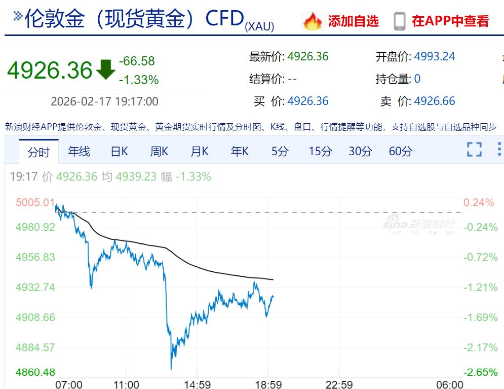 现货黄金、白银盘中突然跳水,白银一度大跌约5%,黄金一度跌破4900美元/盎司,目前在4930美元下方,现货白银在74美元上下徘徊。