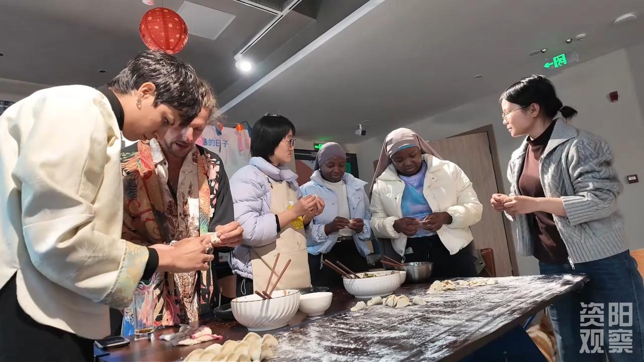 案板旁,还有不少人围在一起包饺子,彼此搭把手、聊几句,原本陌生的人,渐渐熟络起来。“在这里感受很好,大家聚在一起烹饪、吃饭、看电视,能够相互交流增进感情。”来自法国的友人 Celia说道。