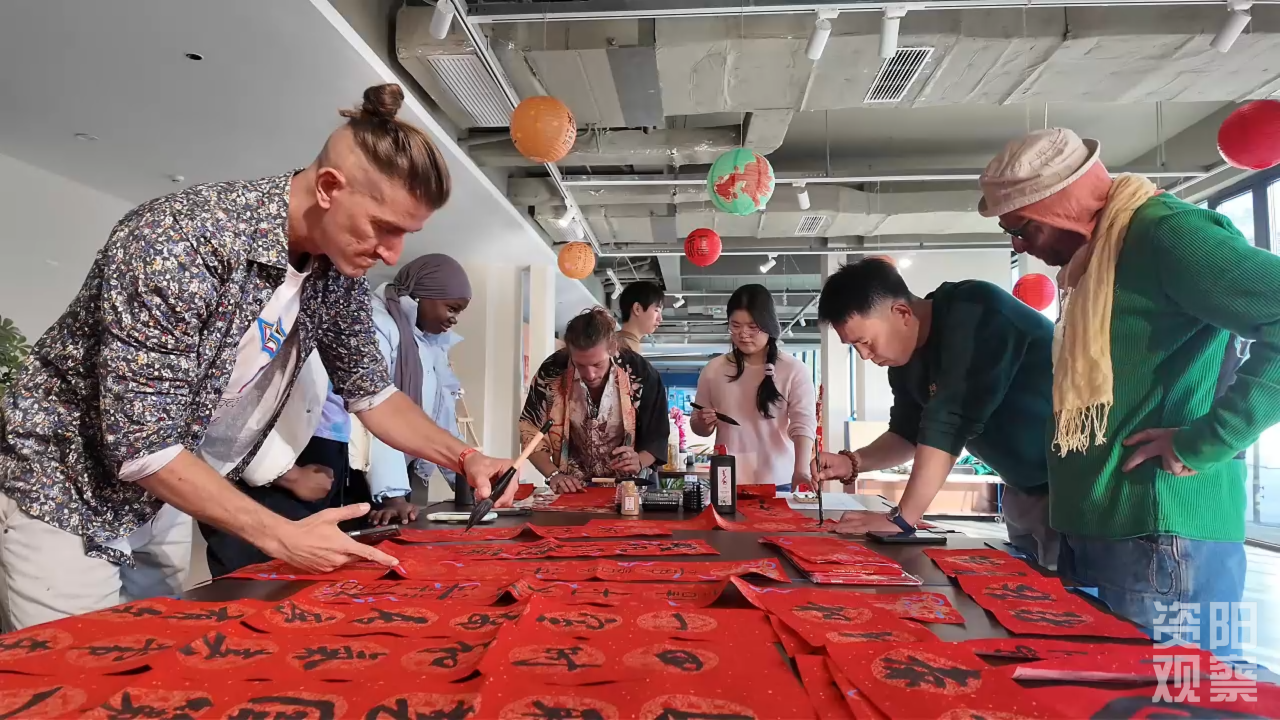 “馅儿再放多一点!”“福字往左边贴一点!”2月16日下午,阳光斜洒进资阳国际数字游民中心近未来中心的共享厨房,锅碗碰撞声、切菜声、欢笑声早已填满整个空间。三十多名身份各异的青年男女相聚在此——有设计师、情感博主、中医,也有来自德国、法国等国家的外国友人,他们虽互不相识,却要在今夜,共度除夕。