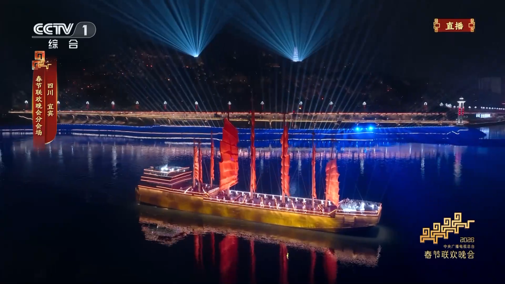 不少观众注意到,央视春节联欢晚会宜宾分会场有条金色帆船,寓意“十五五”开局之年奋勇向前、扬帆远航。