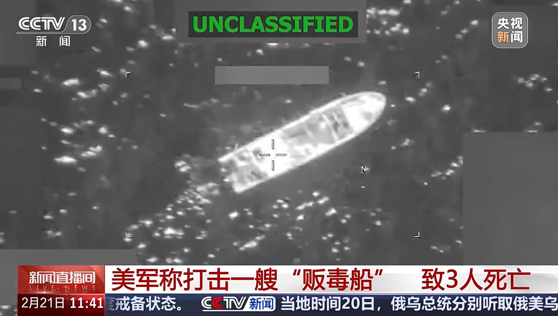 据央视新闻,美军南方司令部2月20日在社交媒体上发文称,当天在东太平洋对一艘所谓“贩毒船”实施打击,打死船上3人。
