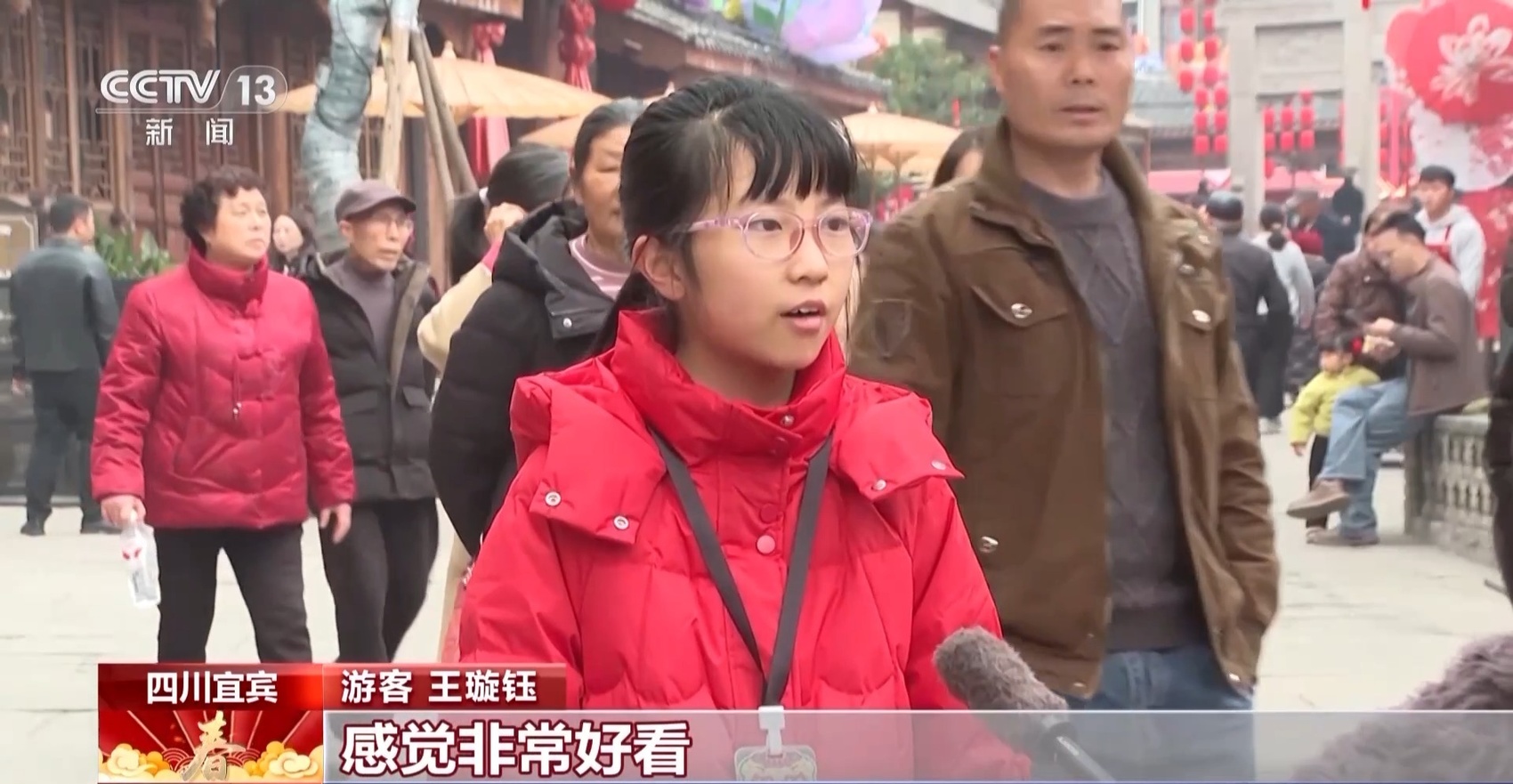 游客 王璇钰:刚刚路过一个扎染坊,感觉非常好看、非常热闹,年味非常浓,很有特色。祝大家马上发财,马年大吉。