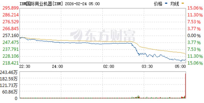 受Anthropic旗下Claude宣布支持COBOL相关能力影响,IBM跌超13%,创2000年以来最大跌幅。