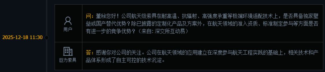 如2025年12月11日接受东北证券调研,而东北证券在今年1月份也发布了名为“传统索具龙头,深海+商业航天新兴业务多点开花”的研报。那么,巨力索具在股价上涨初期,与投资者的频繁互动并提及热门概念,究竟是巧合还是有意引导?公司对此又是怎么看的呢?